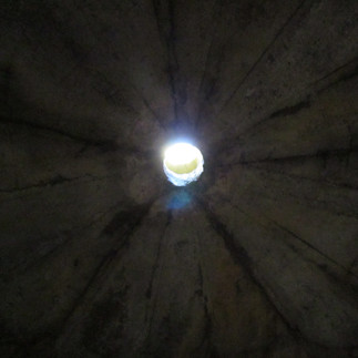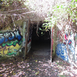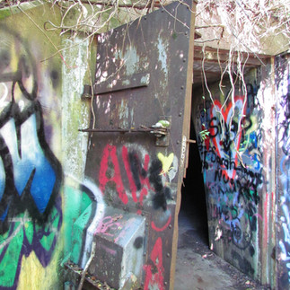 The next morning, looking out the window of our conveniently placed hotel room I noticed there was a line outside the Mothman Museum. Fans of the winged one were continuing to congregate. Terry and I drove just out of town to the igloos at the TNT area. The Mothman was first seen by two couples in this general vicinity so it was a must stop. The igloos are spooky, all overgrown with earth, the inside of the structures full of graffiti. The echo inside is creepy to say the least. Before we walked the path to the spot we were met by a older lady, a "tour guide" of sorts, who told us she was around when the phenomenon first surfaced. A self-proclaimed conductor of the paranormal, she was surprised we had had no otherworldly experiences at the Lowe hotel. Maybe if she'd been with us???